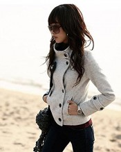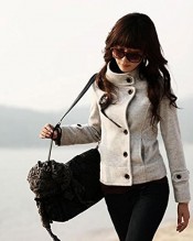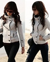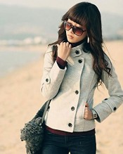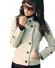 Elegant Winter Warm Stand Collar Wool Blend Women Short Jacket Coat Outerwear