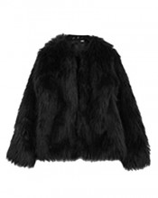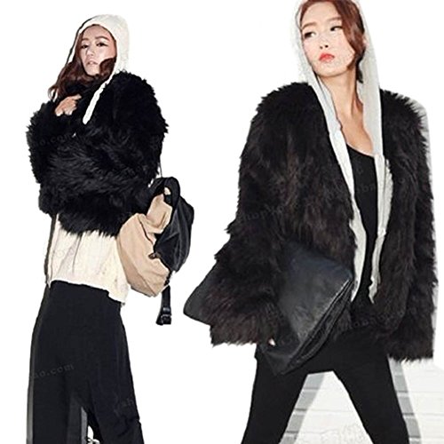 Etosell Chic Lady Faux Fur Coat Long Hair Jacket Winter Outerwear Black L