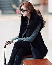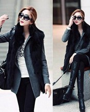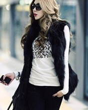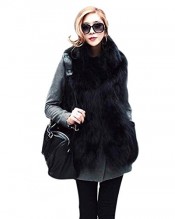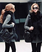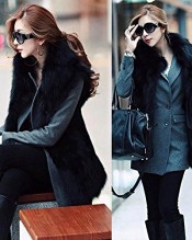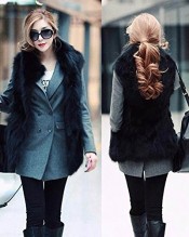 Etosell Women Faux Fox Fur Shaggy Waistcoat Long Hair Lapel Vest Coat Black L