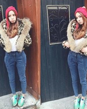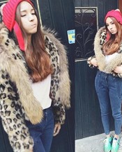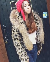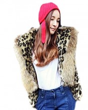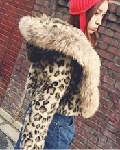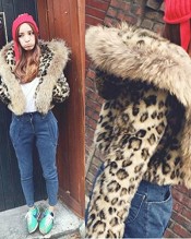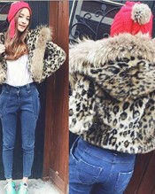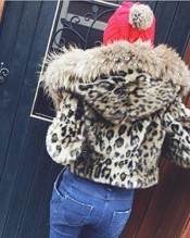 Etosell Women’s Korean Leopard Printed Faux Fur Winter Hooded Jacket Short Coat
