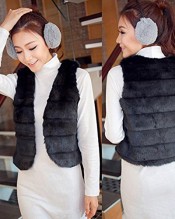 Etosell Women’s Sleeveless Faux Rabbit Fur Vest Short Outerwear Jacket Waistcoat