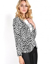 FINEJO Jacket Leopard Blazer Women Coat Suit One Button S-XL Long Sleeve Shrug C1MY