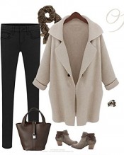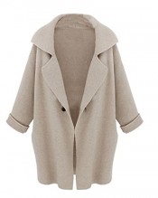 Finejo Women Batwing Loose Jumper Knit Cardigan Sweater Long Design Jacket Coat (One Size, Beige)