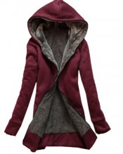 Finejo Women’s Thicken Warmer Hoodie Coat Outerwear Jacket Medium Wine Red