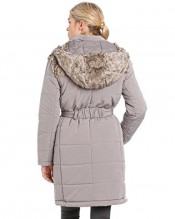 French Connection Women’s Juliette Jacket Hooded Quilted Long Sleeve Coat, Grey Otter, Size 10