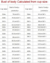 Note:Your bra(cup) size is different from your body size, that can be derived from your cup size usually, pls check the picture of the form in the product page:Bust of body Calculated from cup size.