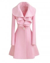 Hee Grand Women Fit Trench Coat Long Wool Blend Jacket Parka Fashion Girl Slim Outwear Pink L