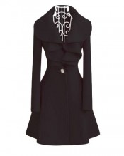 Izaac Womens Slim Fit Ruffle Winter Woolen Jacket Coat Overcoat Long Jacket (Asia XXL=UK 12, Black)