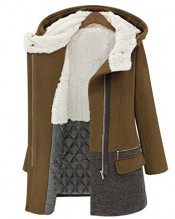 Jollychic Women’s Stylish Hooded Fleece Quilted Winter Long Woolen Zipper Coat Size 12 UK As the Picture