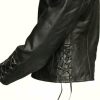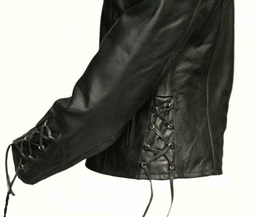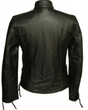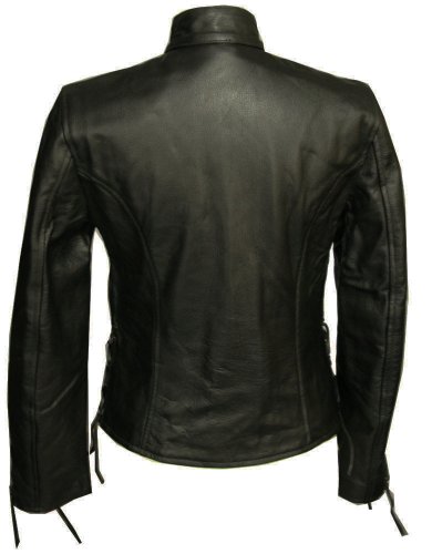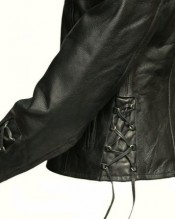 A FANTASTIC fitted real leather jacket manufactured specifically for women who like to look great both on the bike and off. The side leather laced hip detail and leather laces on the cuffs enhance the stylish design and provide a really good fit. The jacket is zip fronted with 2 zipped pockets on the front and one inside pocket. Colour: Black