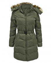 LADIES BRAVE SOUL FUR HOODED QUILTED PADDED LINED PARKA JACKET KHAKI 10