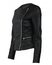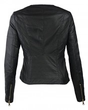 We are happy to present this absolutely gorgeous faux leather jacket which is a must to have in any women’s wardrobe. Made from soft faux leather and designed with quilted details and stitching on the shoulders, three front pockets, zip on sleeves and shorter hem at the back. This jacket is fitted and fully lined as well as has a zip fastening. Perfect for any occasion adding a bit of a stylish twist to your outfit instantly!