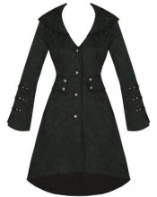 Ladies New Black Gothic Military Jacquard Steampunk Floral Brocade Jacket Coat