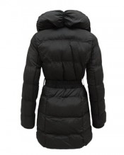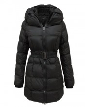 LADIES PUFFER PADDED COLLAR BELTED LONG WARM DOWN PARKA JACKET BLACK 10