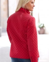 Navy & Red Plus Size Classic Quilted Fitted Spring Summer Jacket Short Coat (26, Red)