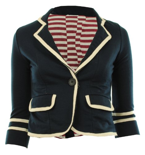 Navy UK 14 – Arely New Womens Sailor Nautical Lined Piped Collar Hem Waist Ladies Blazer Jacket Coat