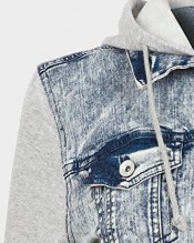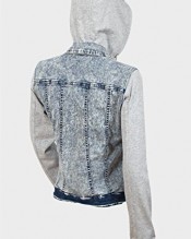 New Ladies Acid Wash Hooded Denim Jeans Jacket Long Jersey Sleeves Womens Size 14 UK