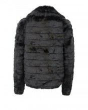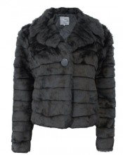 NEW LADIES FAUX FUR WINTER BUTTON POCKET SHORT JACKET WOMENS STRIPE COLLAR COAT BLACK STONE 10-16 (16, BLACK)