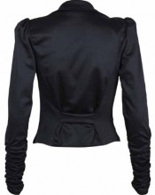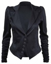 New Ladies Stretch Fitted Pointed Hem Button Blazer Womens Long Ruched Gathered Sleeve Plain Jacket Black Size 14
