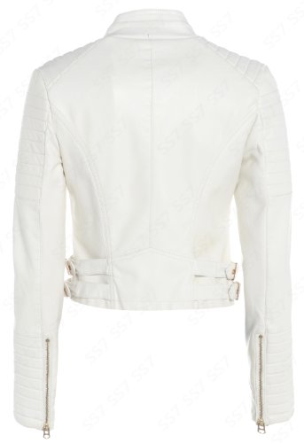 NEW Womens Biker Jacket Off White Faux Leather Size 8 – 16 (UK – 10, Off White)