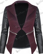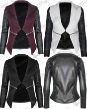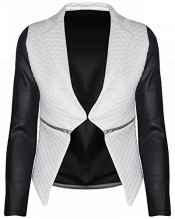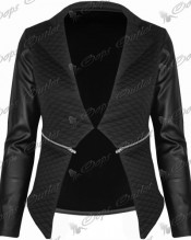 New Womens Ladies Quilted PVC Long Sleeves Zip Waterfall Jacket Coat Blazer Top