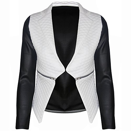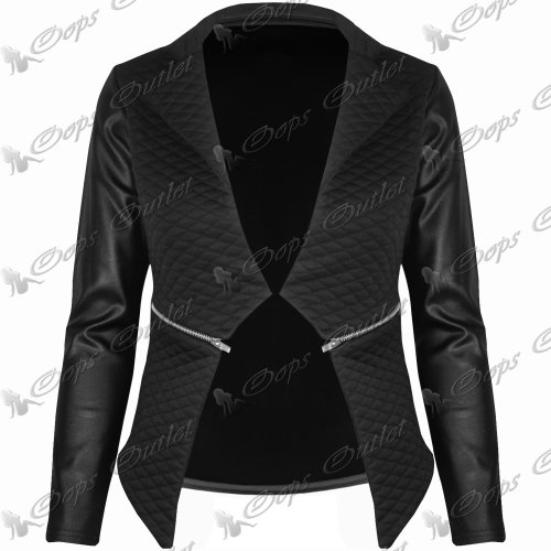 New Womens Ladies Quilted PVC Long Sleeves Zip Waterfall Jacket Coat Blazer Top