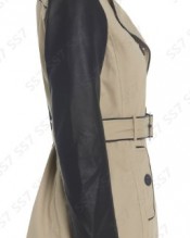 The quintessentially smart coat – this classic beige mac with an upgrade will coordinate with just about everything in your wardrobe. Featuring double breasted button fastening, belted waist, two front pockets, faux leather sleeves and trim.