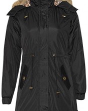 New Womens Plus Size Leopard Line Fur Hooded Long Parka Jacket Winter Coat 18 Black