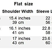 Bust Girth:103cm/40.5inch;Shoulder Width:43cm/16.9inch;Sleeve Length:60cm/23.6inch;Total Length:85cm/33.5inch