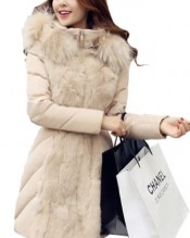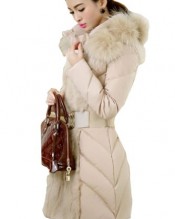 Queenshiny Long Women’s Down Coat Jacket with Super Raccoon Collar and hood S-beige