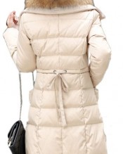 Queenshiny Long Women’s Down Coat Jacket with Super Raccoon Collar S-beige