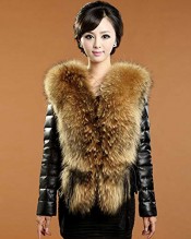 ROPALIA Hot Women Winter Faux Fur Overcoat PU Leather Jacket Short Coat Snowsuit