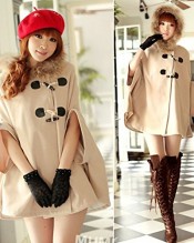 Style: Korean Fashion, Cape Coat, Hooded;Occasion: Casual