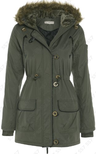 Size 16 – 22 Women’s Parka Coat Khaki Jacket (18)