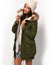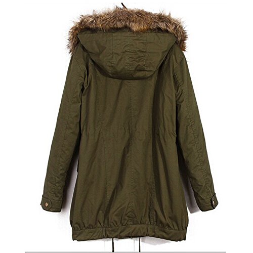 STORM STORE Thicken Warm Winter Faux Fur Trench Coat Jacket Hooded Parka Overcoat With Trim Fur (M)