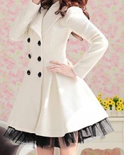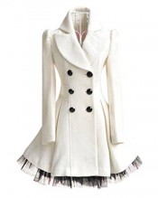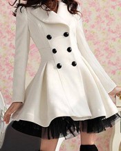 Vakind® Fashion Lady Slim Fit Wool Women Double Breasted Trench Warm Coats Jacket (M, White)