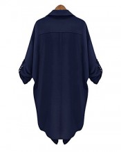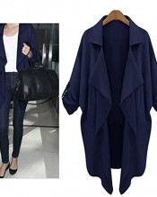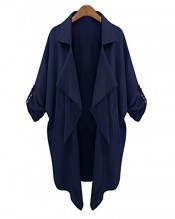 Vktech Women Fashion Vintage Long Sleeve Lapel Thin Long Trench Coat Outwear (XL, Navy Blue)