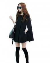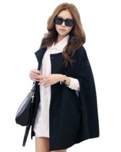 Vobaga Women’s Black Woolen Batwing Cap Coat Warm Winter Poncho Jacket