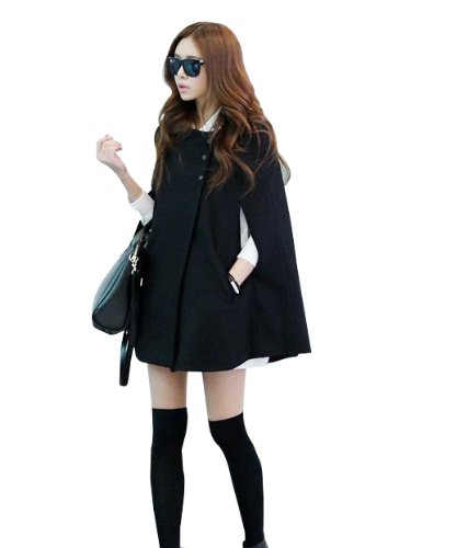 Vobaga Fashion Womens Black Batwing Cape Wool Poncho Jacket Winter Warm Cloak Coat
