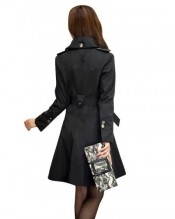Vobaga Women’s Lapel Collar Double Breasted Belted Trench Coat Outwear Jacket Black S