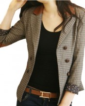 Women’s Vintage Style Double Breasted Check Blazer Jacket Coat