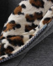Leopard hooded style and warm material.It is suitable to keep warm!