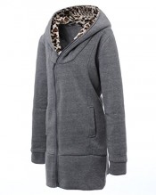 Warm Women Hoodie Coat Zip Jumper Fleece Leopard Hooded Long Jacket Sweatshirt Top Grey