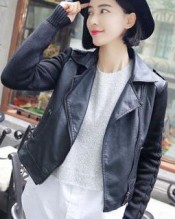 Womdee Women Zip Up Short PU Leather Moto Jacket Coat Outerwear(Black,L) With Womdee Accessory