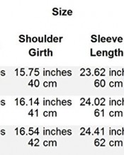 Total Length:74cm/29.1inch;Sleeve Length:60cm/23.6inch;Shoulder width:40cm/15.7ich;Bust Girth:94cm/37inch