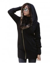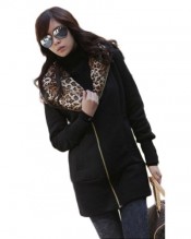 Womdee(TM) New Women’s Long Sleeve Winter Leopard Coat Casual Jacket Zipper Hoodie Sweater-Black With Womdee Accessory