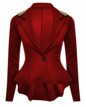 WOMEN LADIES SPIKE STUDDED PEPLUM FRILL TAIL BACK SEXY TOP JACKET/ BLAZER/ COAT (10, RED)