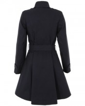 Women Tailored Asymmetric Belted A Line Military Trench Coat Mac Jacket Outdoor (Navy,12)