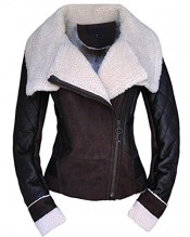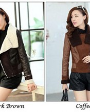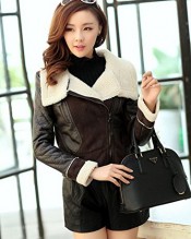 Women’s Faux Fur Leather Winter Coat Turn Down Collar Jacket