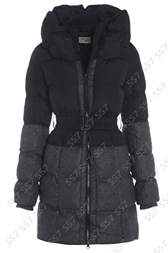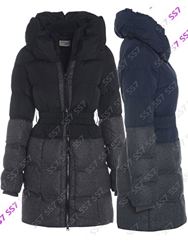 Women’s Padded Long Coat, Black, Navy, Sizes 8 to 16 (UK – 14, Black / Grey)